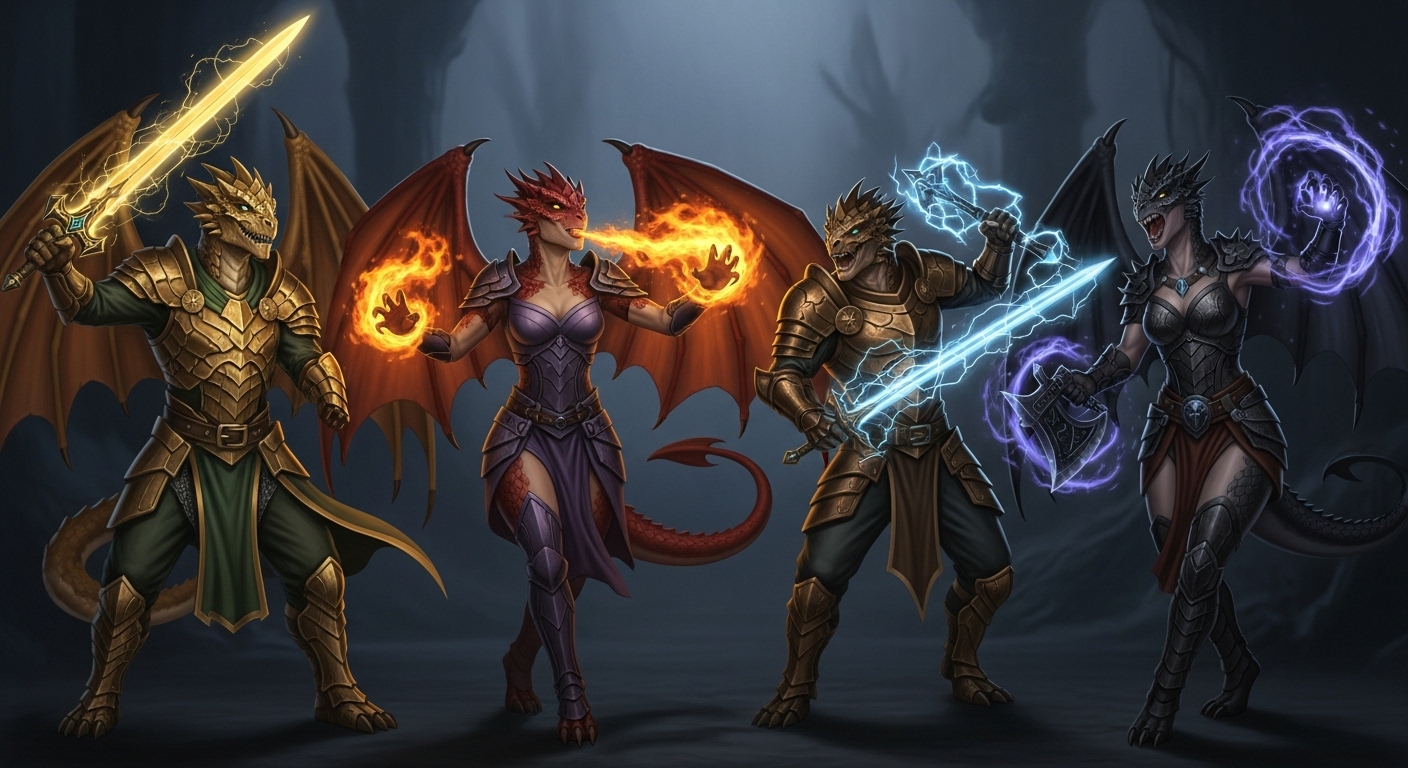 Draconic humanoids with breath weapons and draconic ancestry. Possess natural damage resistance and can develop spectral wings.