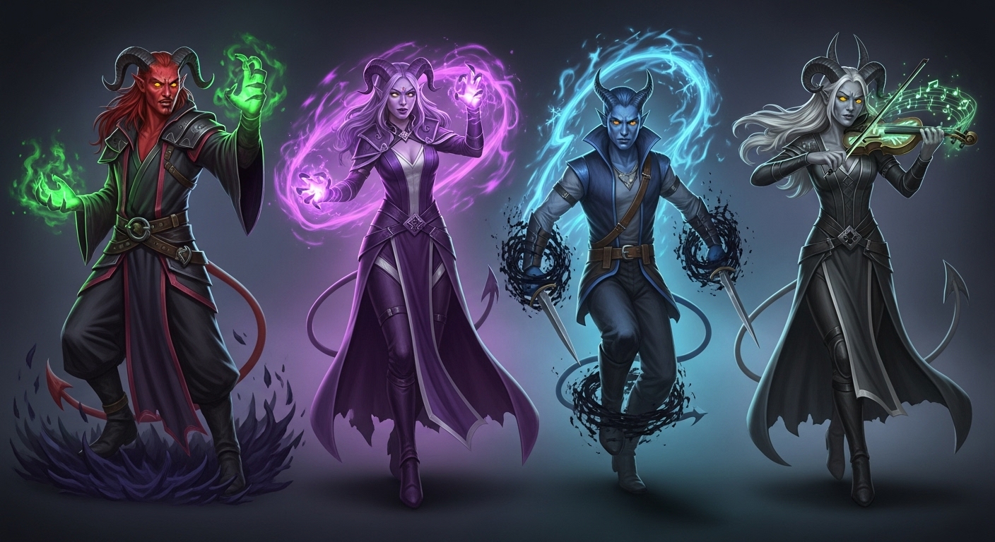 Fiend-touched beings with otherworldly presence and magical heritage. Possess fire resistance and fiendish legacy abilities.