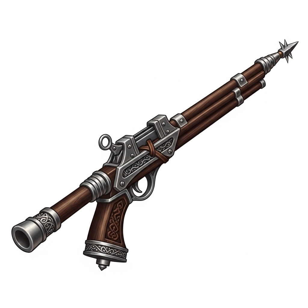 A blowgun is a simple tube used to fire small darts or needles by the force of breath. While its damage is minimal, it excels at delivering poisons and other substances silently, making it a weapon of choice for assassins and those who favor stealth over direct confrontation.