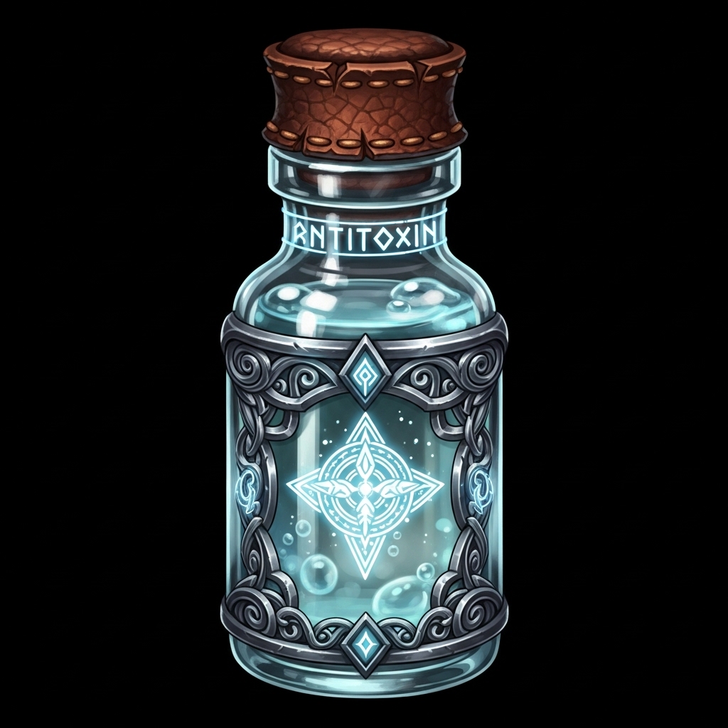 Antitoxin is a carefully prepared alchemical mixture designed to neutralize toxins and provide resistance to poisoning. This valuable substance is typically stored in small vials and consumed when poison exposure is anticipated or has already occurred.