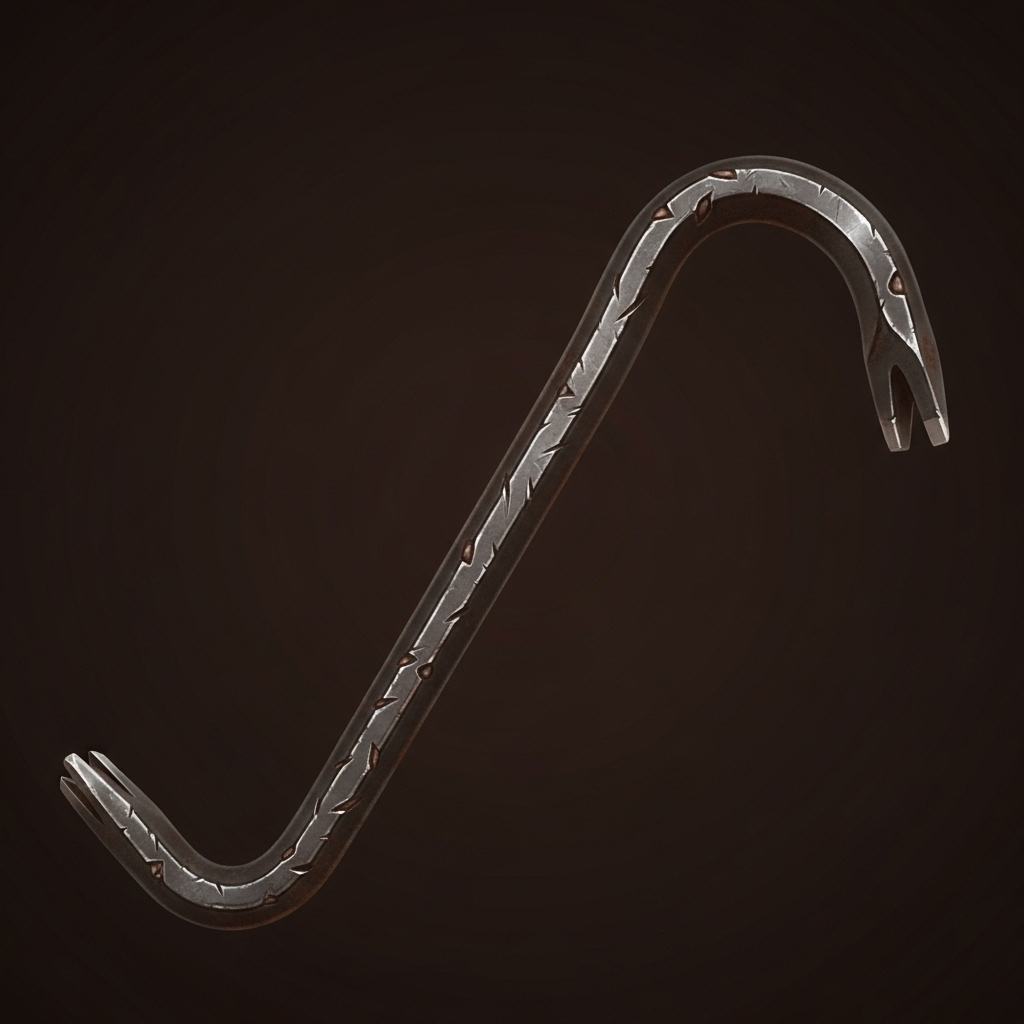 A crowbar is a heavy iron rod with one end flattened and curved into a wedge shape. This versatile tool provides mechanical advantage through leverage, making it indispensable for prying, breaking, and forcing entry into secured areas.