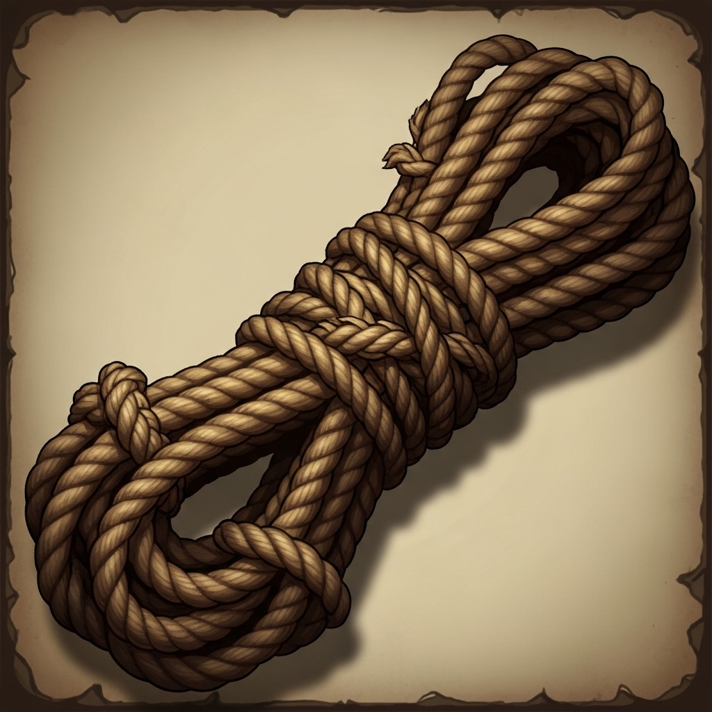 Rope (50 feet) is made of hemp or a similar material. Rope is essential for any adventuring party, providing countless utility options from climbing and rappelling to securing equipment and binding prisoners.