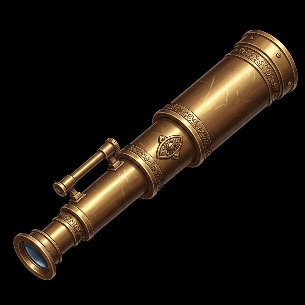 A precision optical instrument consisting of multiple lenses arranged in an extendable brass tube. This masterwork device allows users to observe distant objects with remarkable clarity, making it invaluable for reconnaissance, navigation, and surveillance operations.