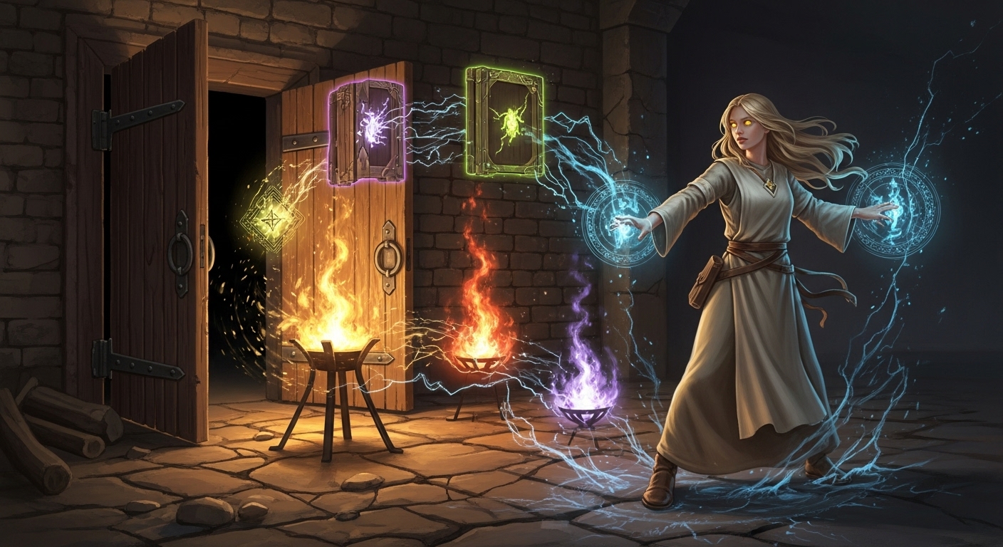SpellsSpells A-ZOn this pageSpells A-ZThis index provides quick access to all spell descriptions organized by their reference numbers. A Acid ArrowAcid SplashAidAlarmAlter SelfAnimal FriendshipAnimal MessengerAnimal ShapesAnimate DeadAnimate ObjectsAntilife ShellAntimagic FieldAntipathy SympathyArcane EyeArcane HandArcane LockArcane SwordArcanist's Magic AuraAstral ProjectionAuguryAura Of LifeAwaken B BaneBanishmentBarkskinBeacon Of HopeBefuddlementBestow CurseBlack TentaclesBlade BarrierBlessBlightBlindness DeafnessBlinkBlurBurning Hands C Call LightningCalm EmotionsChain LightningCharm MonsterCharm PersonChill TouchChromatic OrbCircle Of DeathClairvoyanceCloneCloudkillColor SprayCommandCommuneCommune with NatureComprehend LanguagesCompulsionCone Of ColdConfusionConjure AnimalsConjure CelestialConjure ElementalConjure FeyConjure Minor ElementalsConjure Woodland BeingsContact Other PlaneContagionContingencyContinual FlameControl WaterControl WeatherCounterspellCreate Food and WaterCreate or Destroy WaterCreate UndeadCreationCure WoundsDancing Lights D DarknessDarkvisionDaylightDeath WardDelayed Blast FireballDemiplaneDetect Evil and GoodDetect MagicDetect Poison and DiseaseDetect ThoughtsDimension DoorDisguise SelfDisintegrateDispel Evil and GoodDispel MagicDissonant WhispersDivinationDivine FavorDivine SmiteDivine WordDominate BeastDominate MonsterDominate PersonDragon'S BreathDreamDruidcraftEarthquakeEldritch BlastElementalismEnhance AbilityEnlarge ReduceEnsnaring StrikeEntangleEnthrallEtherealness E Expeditious RetreatEyebiteFabricateFaerie FireFaithful HoundFalse LifeFear F Feather FallFind FamiliarFind SteedFind the PathFind TrapsFinger Of DeathFireballFire BoltFire ShieldFire StormFlame BladeFlame StrikeFlaming SphereFlesh to StoneFloating DiskFlyFog CloudForbiddanceForcecageForesightFreedom Of MovementFreezing SphereGaseous FormGateGeasGentle ReposeGiant InsectGlibnessGlobe Of InvulnerabilityGlyph Of WardingGoodberryGreaseGreater InvisibilityGreater RestorationGuardian Of FaithGuards and Wards G GuidanceGuiding BoltGust Of WindHallowHallucinatory TerrainHarmHasteHeal H Healing WordHeat MetalHellish RebukeHeroes' FeastHeroismHexHideous LaughterHold MonsterHold PersonHoly AuraHunter's MarkHypnotic PatternIce KnifeIce Storm I IdentifyIllusory ScriptImprisonmentIncendiary CloudInflict WoundsInsect PlagueInstant SummonsIrresistible DanceInvisibility J Jump K KnockLegend LoreLesser RestorationLevitate L LightLightning BoltLocate Animals or PlantsLocate CreatureLocate ObjectLongstriderMage Armor M Mage HandMagic CircleMagic JarMagic MissileMagic MouthMagic WeaponMagnificent MansionMajor ImageMass Cure WoundsMass HealMass Healing WordMass SuggestionMazeMeld into StoneMendingMessageMeteor SwarmMind BlankMind SpikeMinor IllusionMirage ArcaneMirror ImageMisleadMisty StepModify MemoryMoonbeamMove Earth N NondetectionPasswallPass without TracePhantasmal ForcePhantasmal KillerPhantom SteedPlanar AllyPlanar BindingPlane ShiftPlant GrowthPoison SprayPolymorphPower Word HealPower Word KillPower Word StunPrayer Of Healing P PrestidigitationPrismatic SprayPrismatic WallPrivate SanctumProduce FlameProgrammed IllusionProject ImageProtection from EnergyProtection from Evil and GoodProtection from PoisonPurify Food and DrinkRaise DeadRay Of Enfeeblement R Ray Of FrostRegenerateRay Of SicknessReincarnateRemove CurseResilient SphereResistanceResurrectionReverse GravityRevivifyRope TrickSacred FlameSanctuaryScorching RayScryingSearing SmiteSecret ChestSee InvisibilitySeemingSendingSequesterShapechangeShatter S ShieldShield Of FaithShillelaghShining SmiteShocking GraspSilenceSilent ImageSimulacrumSleepSleet StormSlowSorcerous BurstSpare the DyingSpeak with AnimalsSpeak with DeadSpeak with PlantsSpider ClimbSpike GrowthSpirit GuardiansSpiritual WeaponStarry WispStinking CloudStone ShapeStoneskinStorm Of VengeanceSuggestionSummon DragonSunbeamSunburstSymbolTelekinesisTelepathic BondTeleportTeleportation CircleThaumaturgy T ThunderwaveTime StopTiny HutTonguesTransport via PlantsTree StrideTrue PolymorphTrue ResurrectionTrue SeeingTrue StrikeTsunamiUnseen ServantVampiric Touch V Vicious MockeryVitriolic SphereWall Of Fire W Wall Of ForceWall Of IceWall Of StoneWall Of ThornsWarding BondWater BreathingWater WalkWebWeirdWind WalkWind WallWishWord Of Recall Z Zone Of Truth