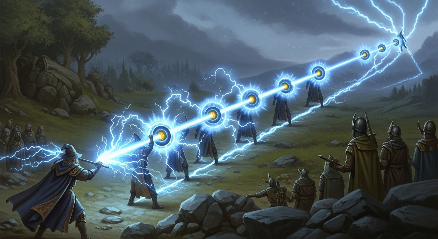 A Line is an area of effect that extends from a point of origin in a straight path along its length and covers an area defined by its width. The effect that creates a Line specifies its length and width. A Line's point of origin isn't included in the area of effect unless its creator decides otherwise.