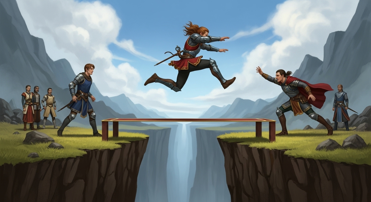 move at least 10 feet immediately before the jump. When you make a standing Long Jump, you can leap only half that distance. Either way, each foot you jump costs a foot of movement. If you land in Difficult Terrain, you must succeed on a DC 10 Dexterity (Acrobatics) check or have the Prone condition. This Long Jump rule assumes that the height of the jump doesn't matter, such as a jump across a stream or chasm. At your GM's option, you must succeed on a DC 10 Strength (Athletics) check to clear a low obstacle (no taller than a quarter of the jump's distance), such as a hedge or low wall. Otherwise, you hit the obstacle.